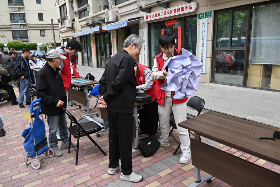 大学生志愿者则负责“服务”。当社区的需求“靶心”被精准定位后,拥有专业特长的大学生就能大显身手:复旦大学计算机创新学院的学生为居民修好了十几台电脑;上海体育大学的学生进社区手把手地教老人们规范“八段锦”的每一个动作……