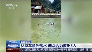 近日,在广西百色凌云县一景区内,一辆私家车意外落水。危急时刻,三名路过的热心群众跳水救人。